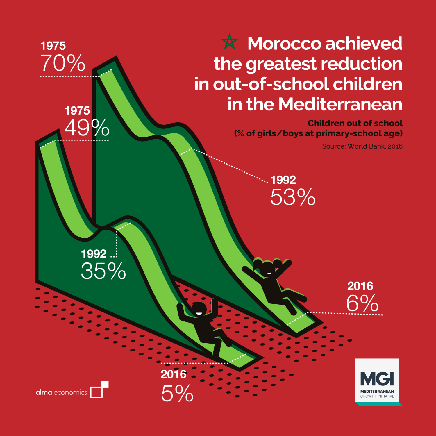 Greatest reduction in out-of-school children in the Med