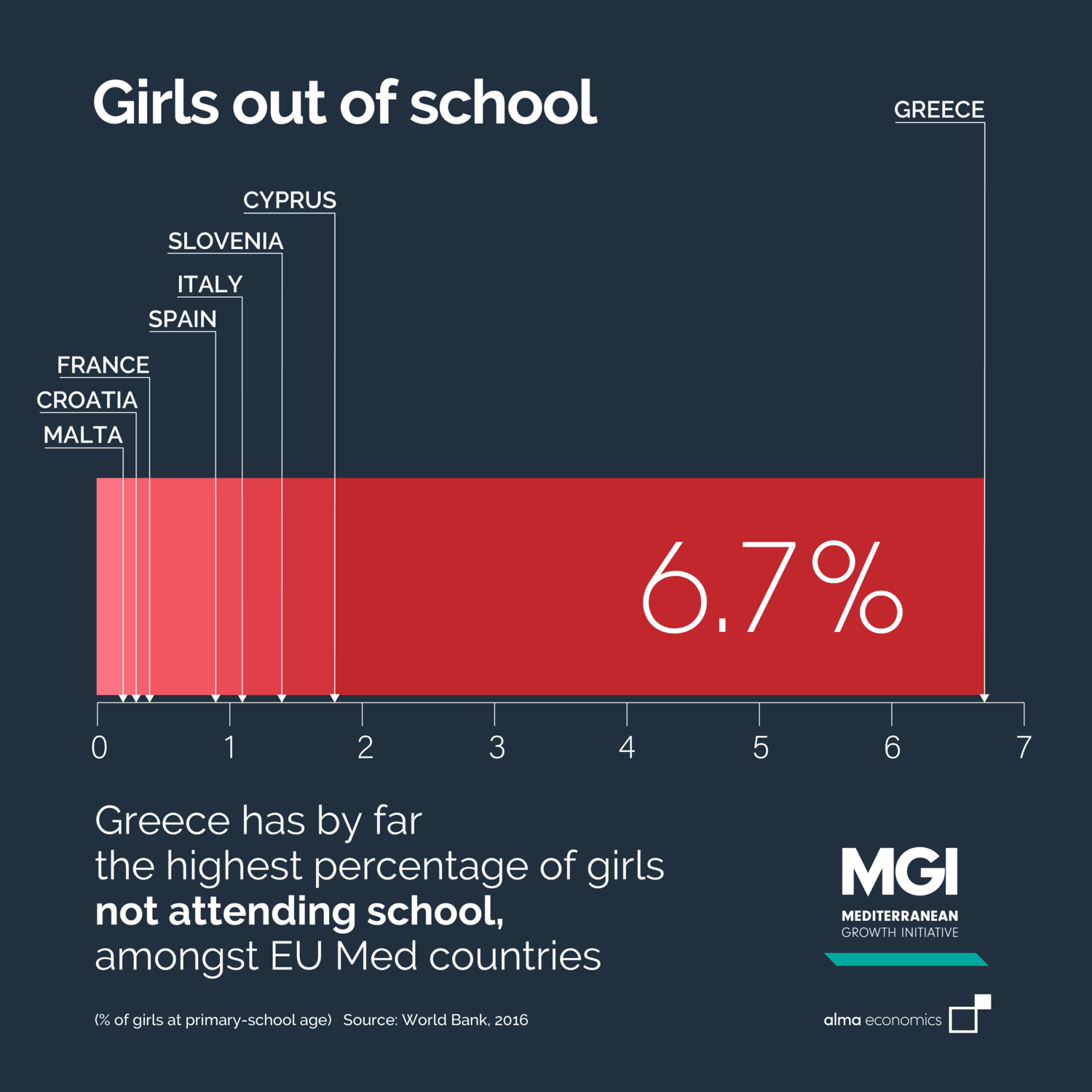 Close to 7% of girls don’t attend primary school in Greece – no other EU Med country has an equivalent figure of more than 2%